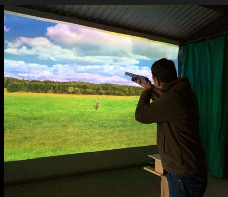 is am indoor shooting simulator designed for clay and game shooters. It replicates real-life shooting scenarios using laser technology and precision tracking, allowing shooters to practice in a controlled, indoor environment.