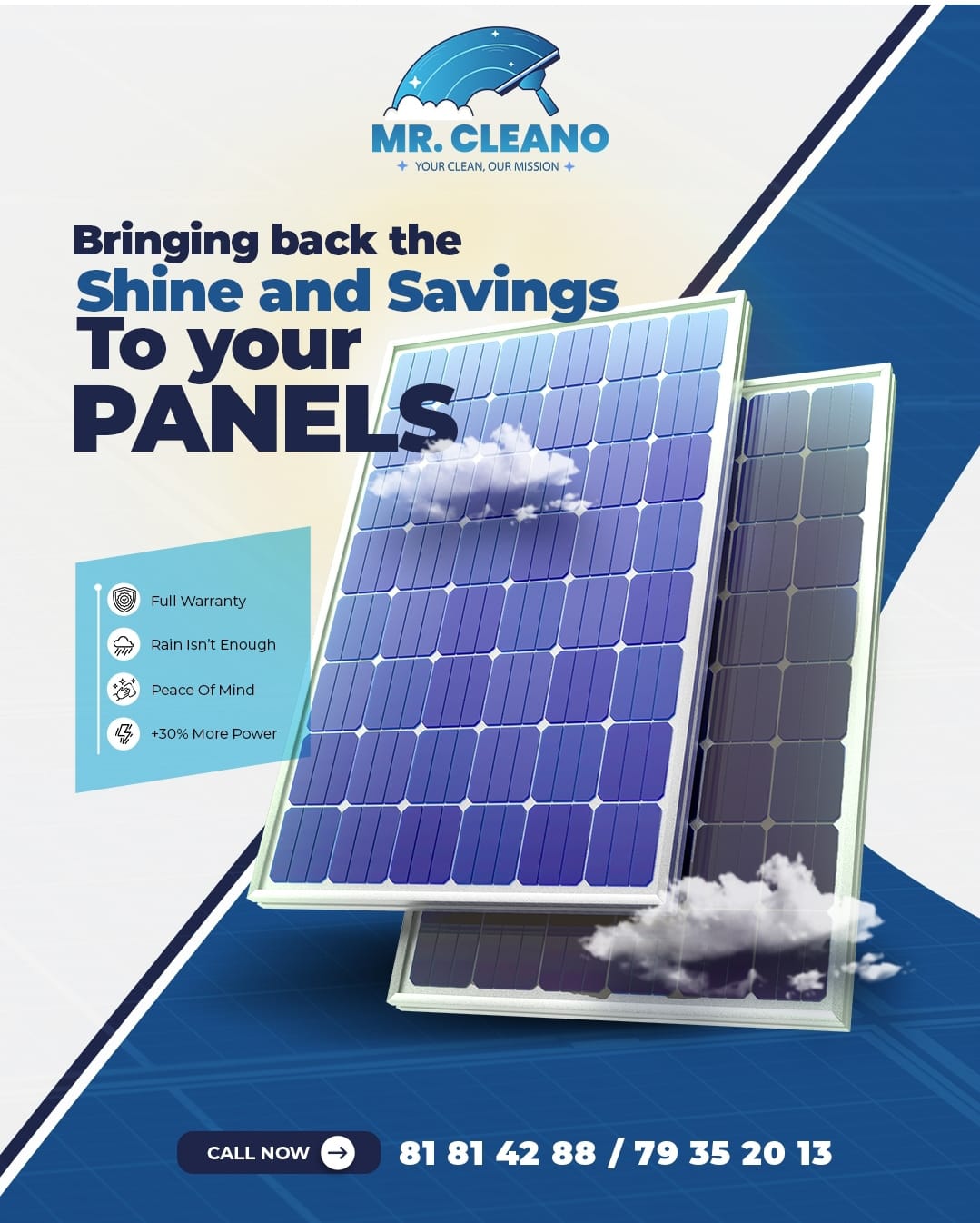 خدمة تنظيف الألواح الشمسية باحترافية لزيادة الكفاءة والأداء وتوفير الطاقة