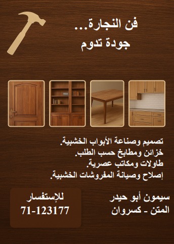 .نجّار محترف يقدم أعمال خشبية مخصصة، تصليح أثاث، وخدمات تركيب بجودة عالية ودقة في التنفيذ