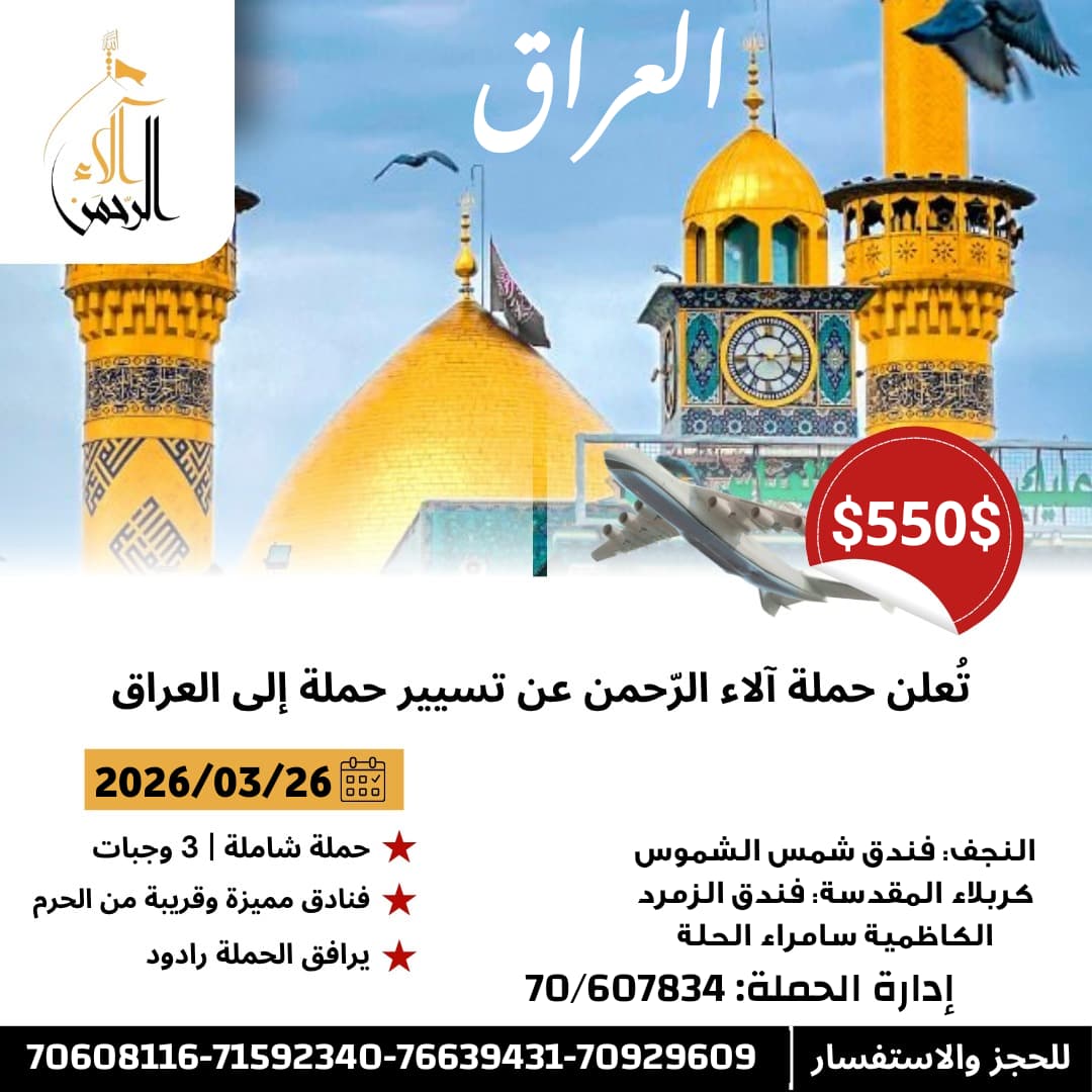 ننظم رحلات حج وعمرة ورحلات دينية وسياحية لزيارة العتبات المقدسة في العراق وإيران والسعودية وسوريا ولبنان