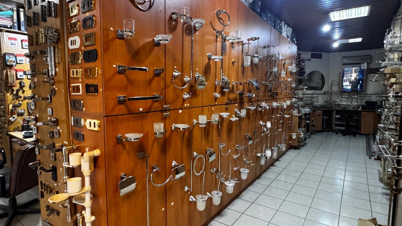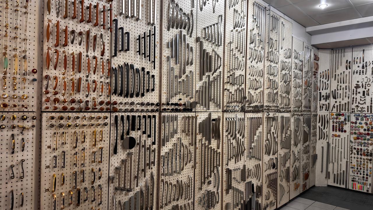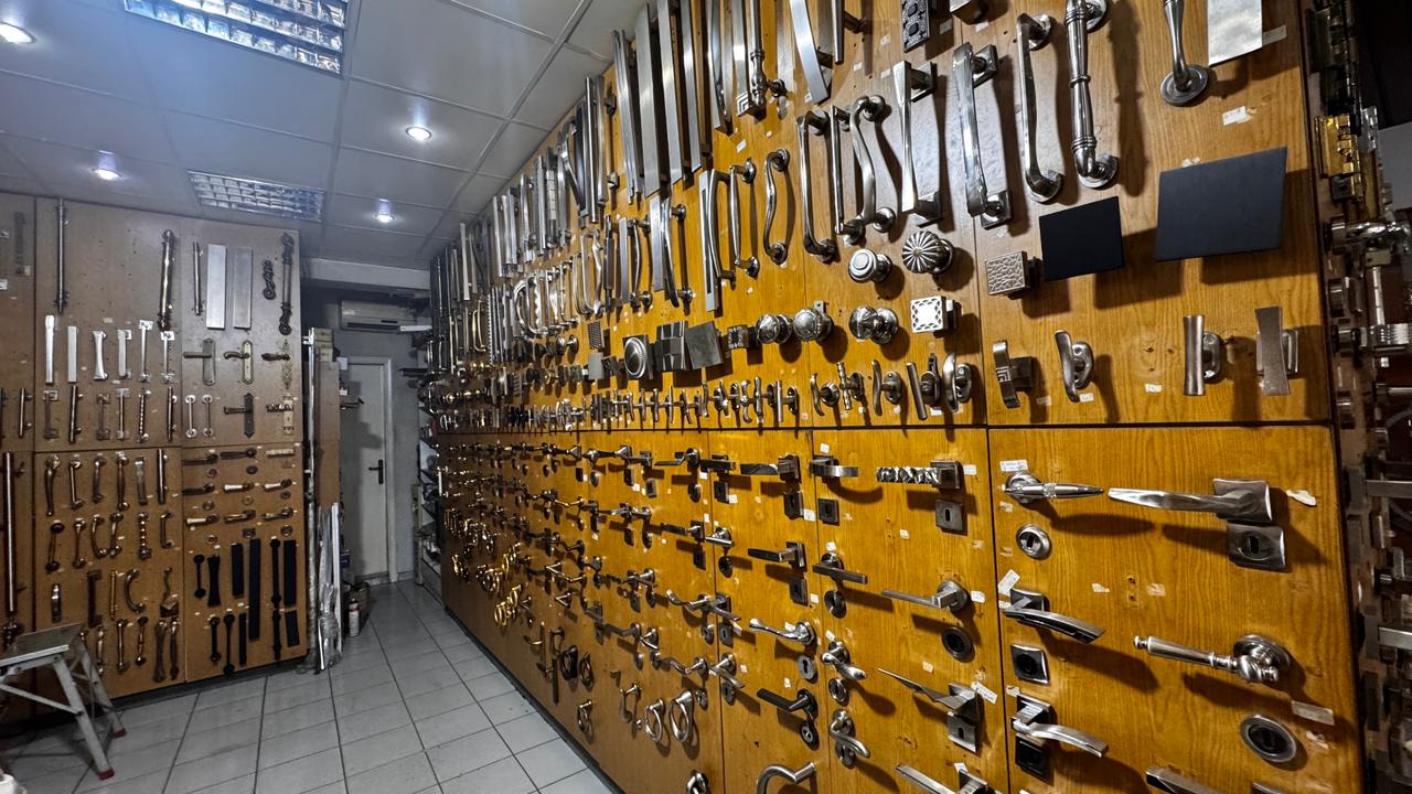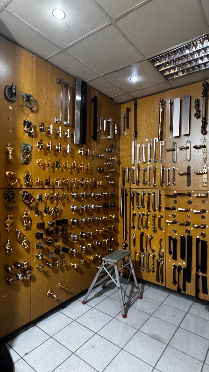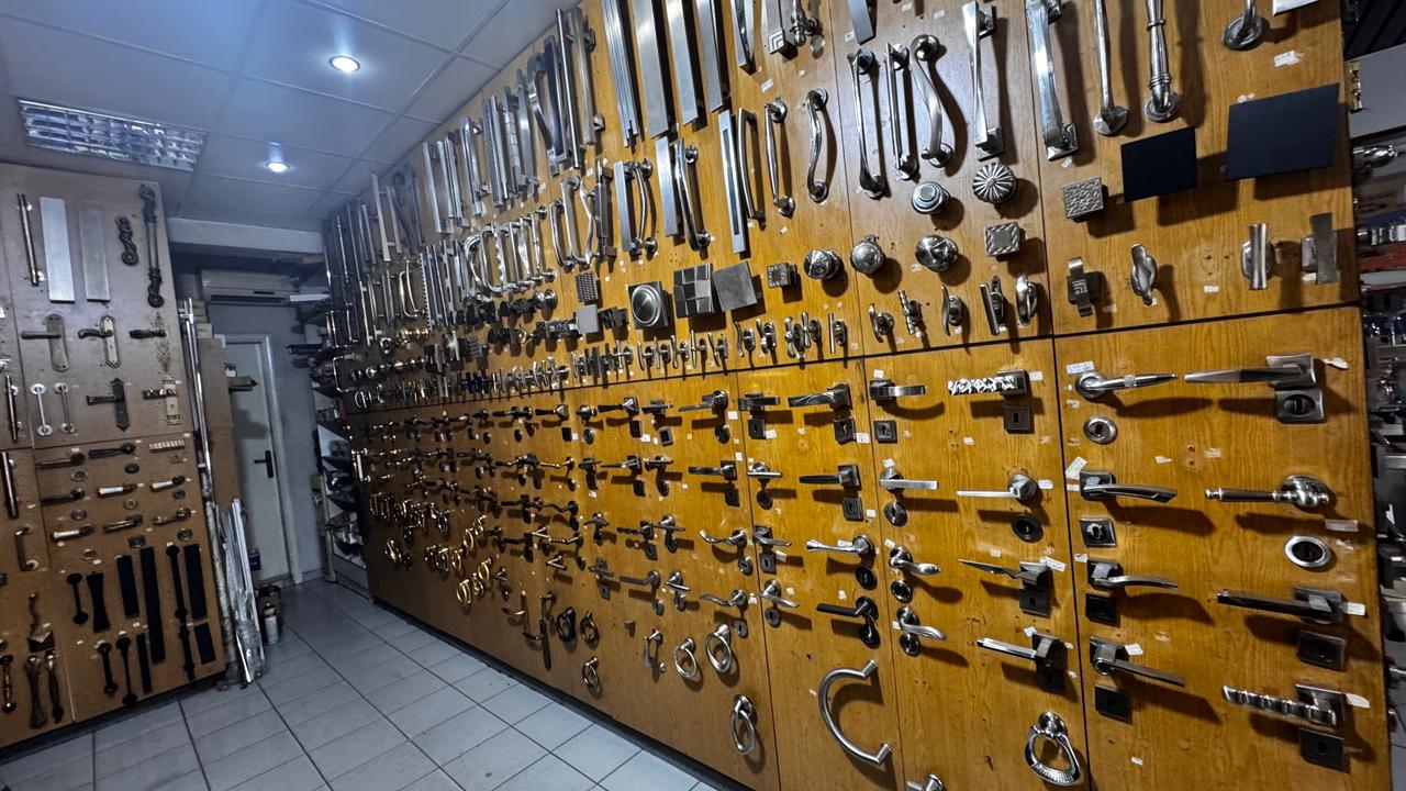 Kitchen and bathroom accessories, all types of handles for doors and furniture, all types of security locks and hinges.
