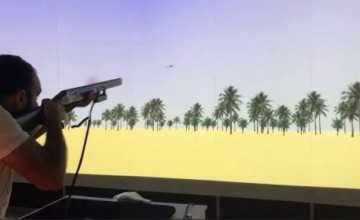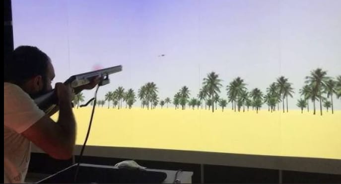 is am indoor shooting simulator designed for clay and game shooters. It replicates real-life shooting scenarios using laser technology and precision tracking, allowing shooters to practice in a controlled, indoor environment.